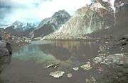 Lumeinimese jäljed Pamiiri mägijärve ääres. Tänu nendele "sensatsioonilistele" fotodele organiseeris "Komsomolskaja Pravda" nõukogude ekspeditsiooni jeti jälgedele. (Hommikuleht 12.03.1993.a.)